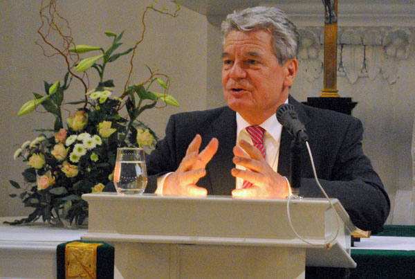 Und wie ist nun Joachim Gauck unter Heuschrecken und Hansestreitigkeiten geraten? Die Auflösung dieses Rätsels findet sich am Ende des Jahrbuchs 2012, wo über einen Vortrag des Noch-nicht-Bundespräsidenten in der Oldenburger Lambertikirche, gehalten auf Einladung des Landesvereins, berichtet wird.